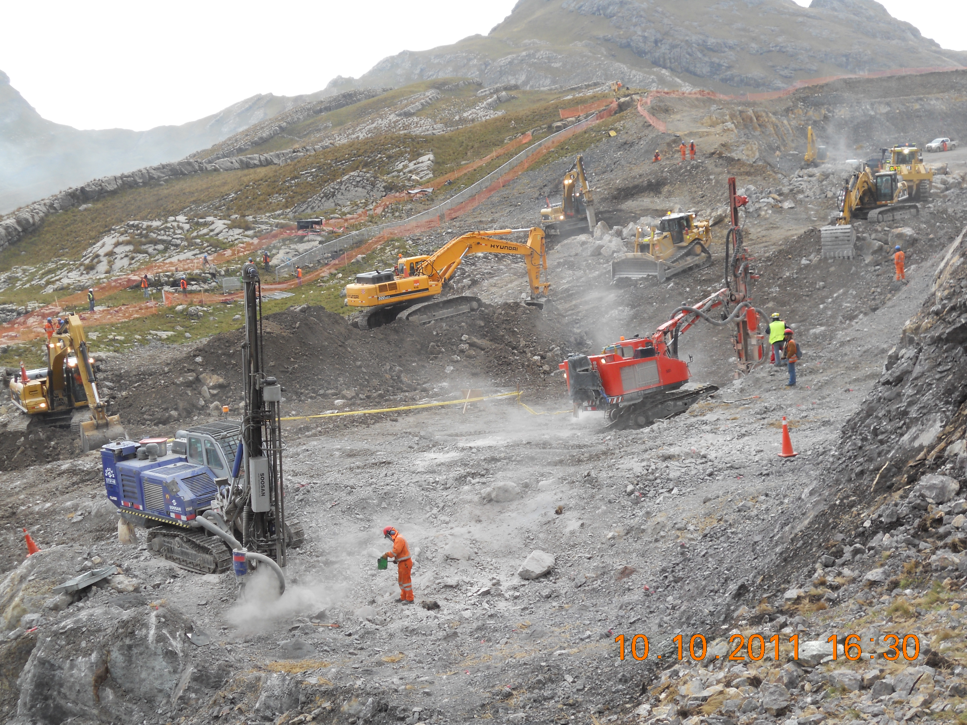 Realizamos servicios de perforación de rocas, con equipos neumáticos e hidráulicos para operaciones mineras superficiales.